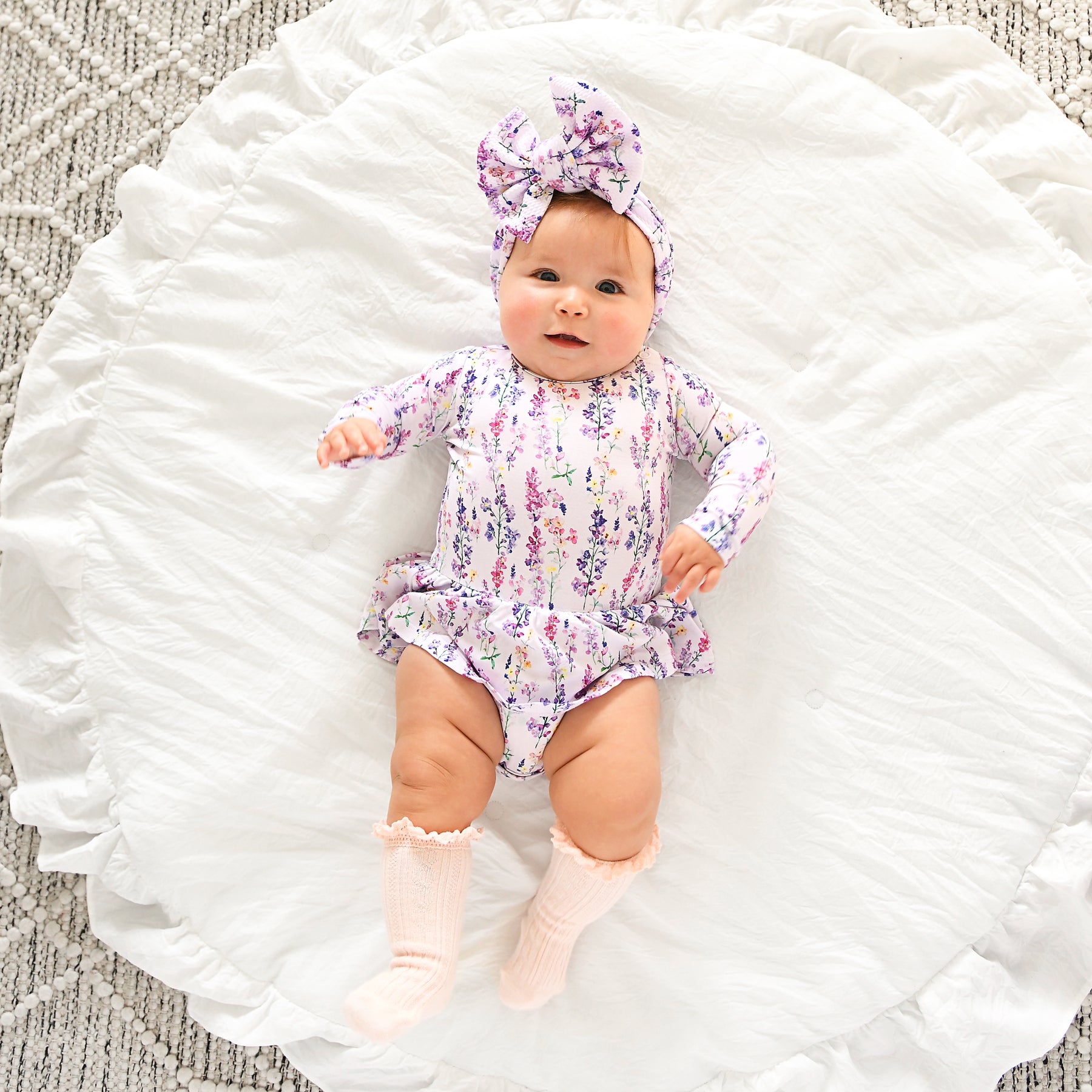 This tutu is super soft and comfortable! Featuring the sweetest little tutu skirt attached to the fitted bodysuit. 3 snaps at bottom make for easy and fast diaper changes. Snaps at the shoulder make taking on and off baby very easy!