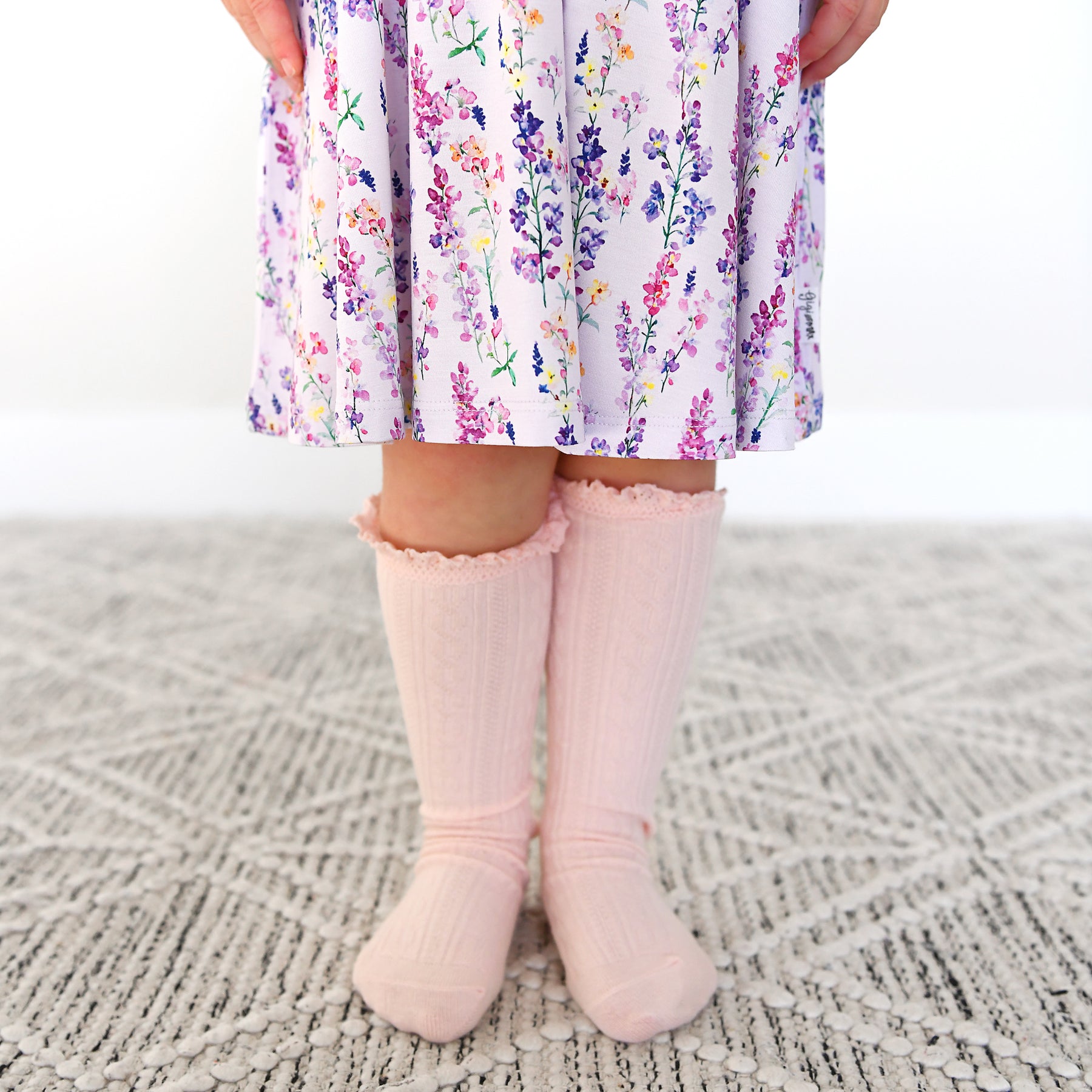 The fabric we used is super stretchy and breathable, made from bamboo viscose, wait until you feel how soft it is! Coordinating buttons are functional. Ruffle around the button placket makes for the cutest touch!