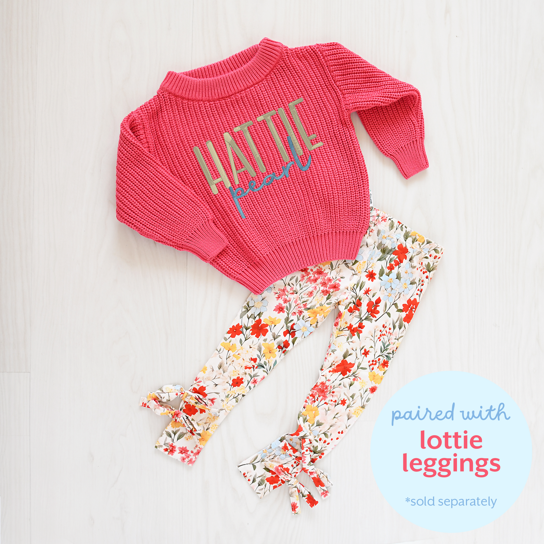 Made from 100% cotton, this plush and soft sweater is as comfy as it is cute. It’s designed with an intentionally oversized fit, so we recommend ordering your child’s usual size.