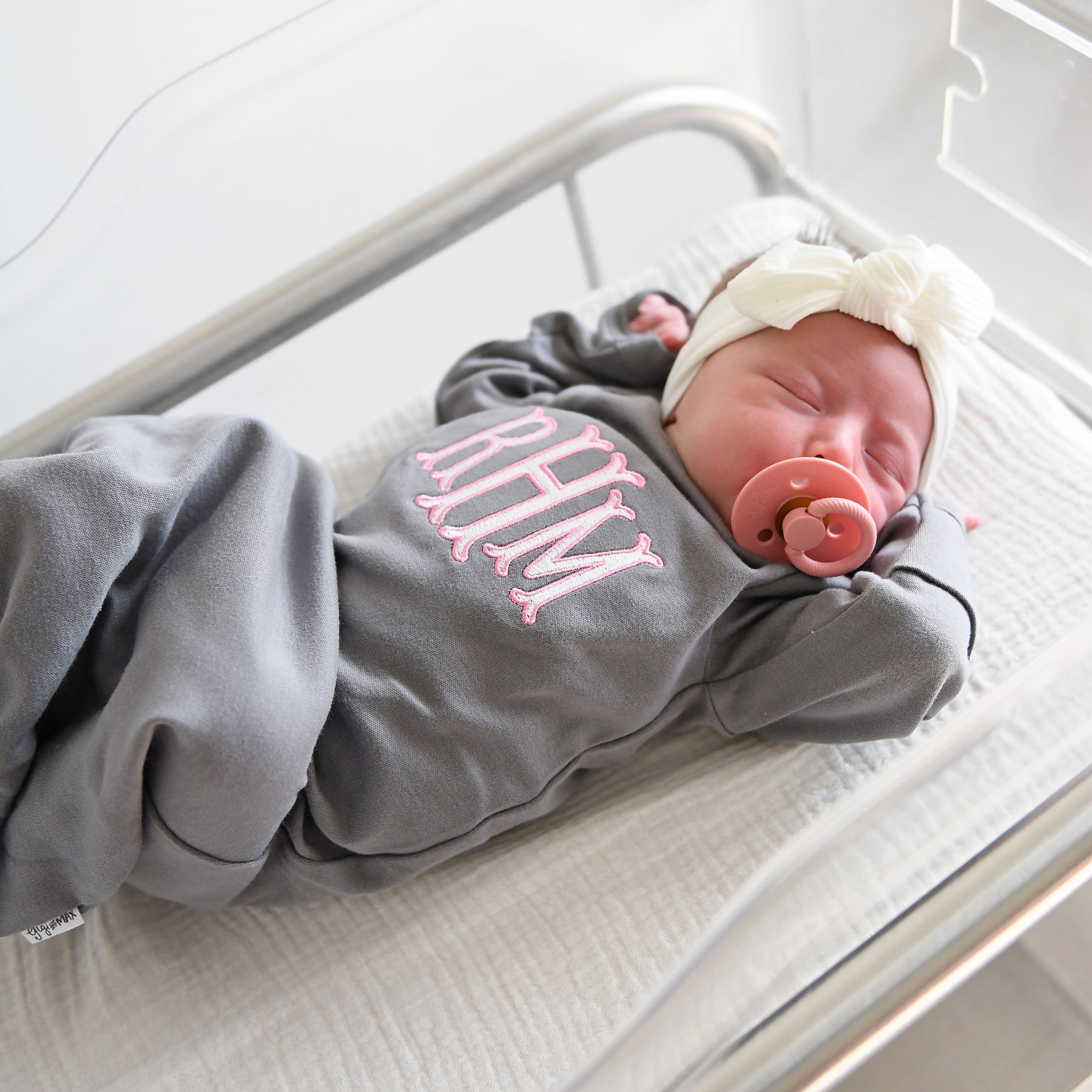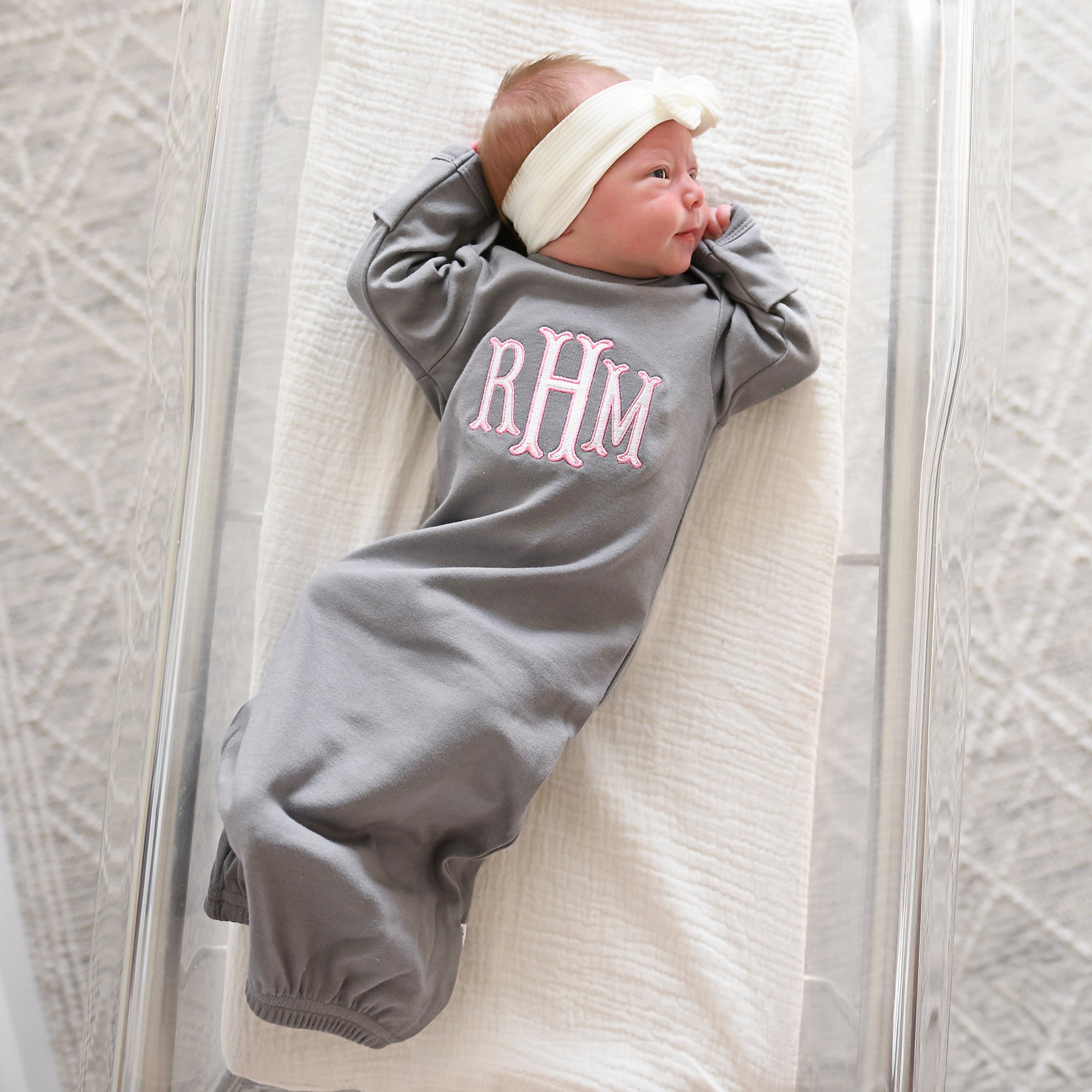 This listing is for a Newborn-sized baby gown made from our signature super soft, stretchy fabric. While tagged as Newborn, it fits comfortably in the 0–3 month range.