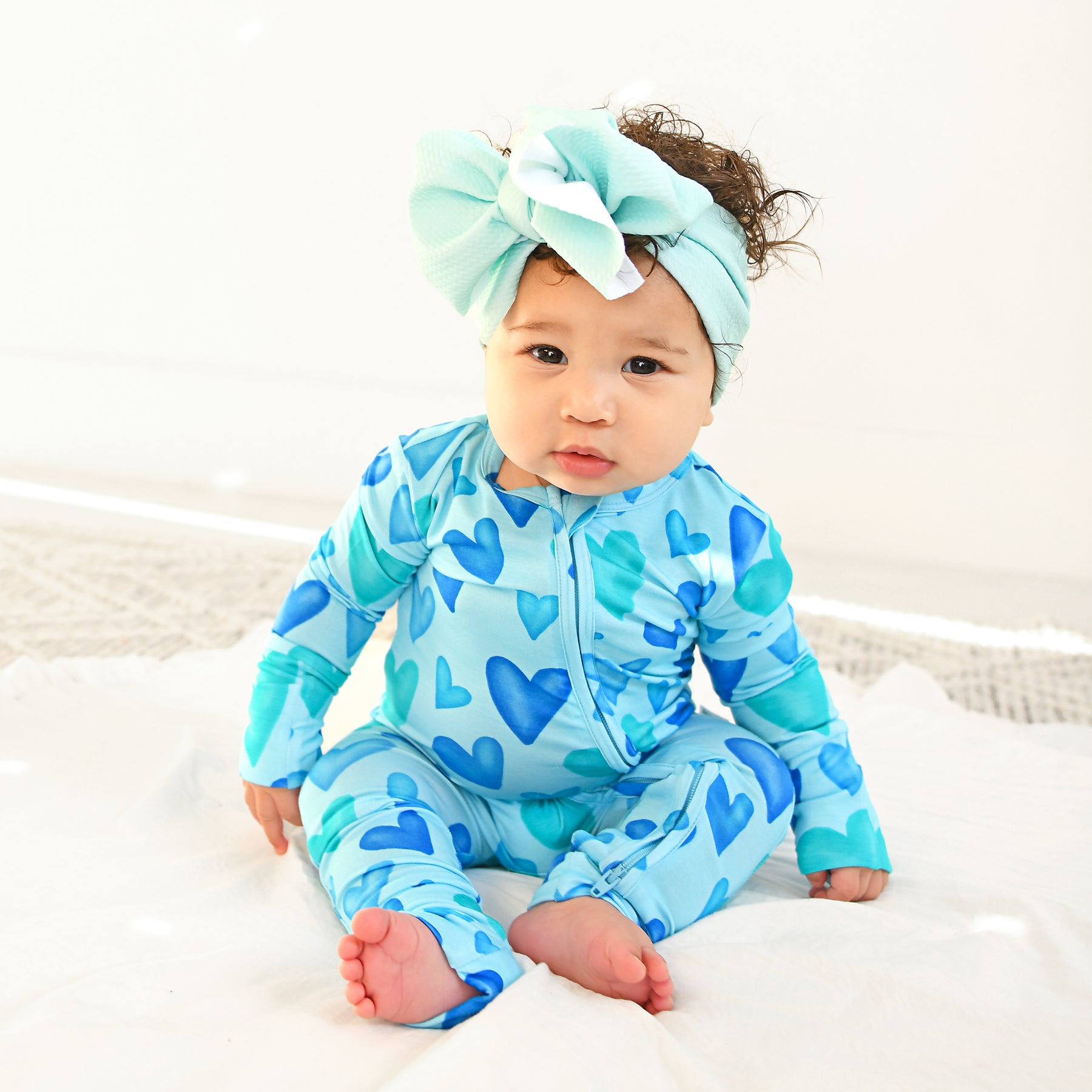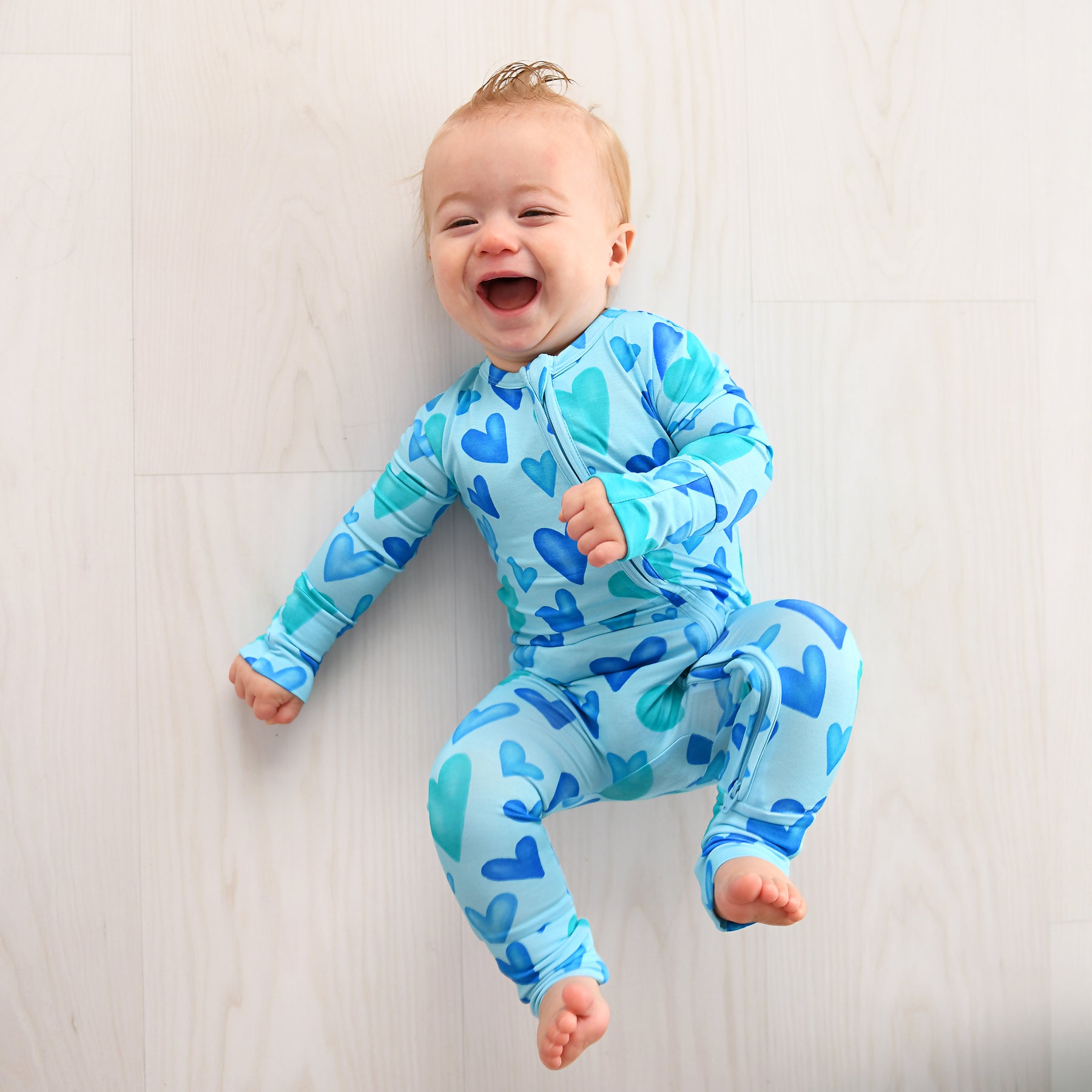 This zip one piece is super soft and comfortable. Featuring a zipper that runs from the top of the outfit to the ankle. Our favorite part about this outfit is that the zipper is 2 way! Making for super easy diaper changes without having to remove the whole outfit.
