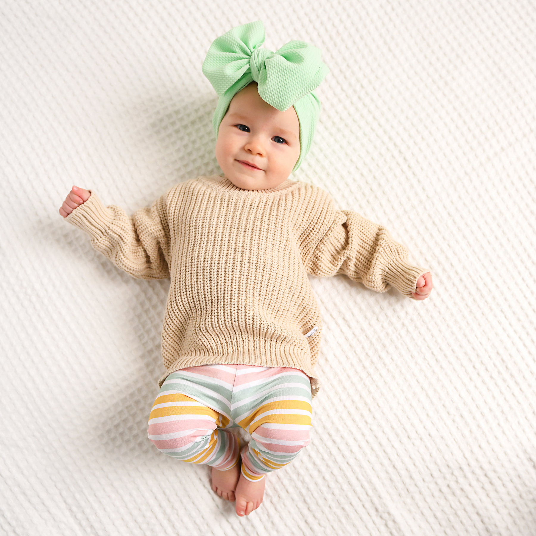 This beautiful headwrap is the perfect accessory for your sweet baby! Made from bullet fabric, a poly/spandex blend, it is super soft and stretchy!