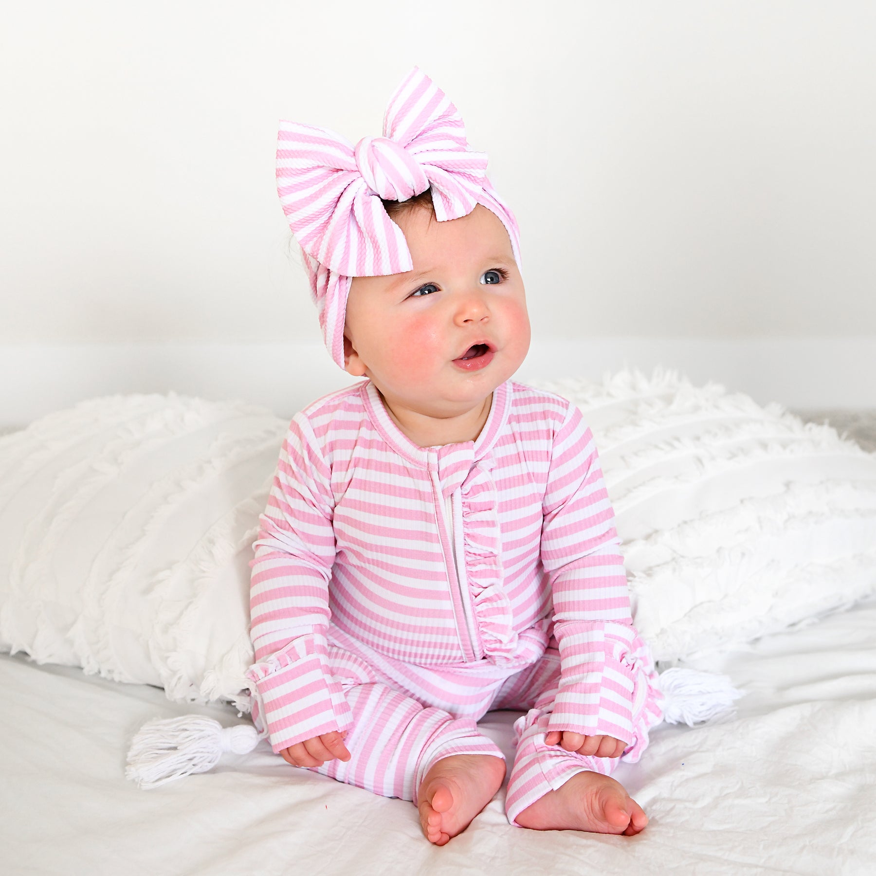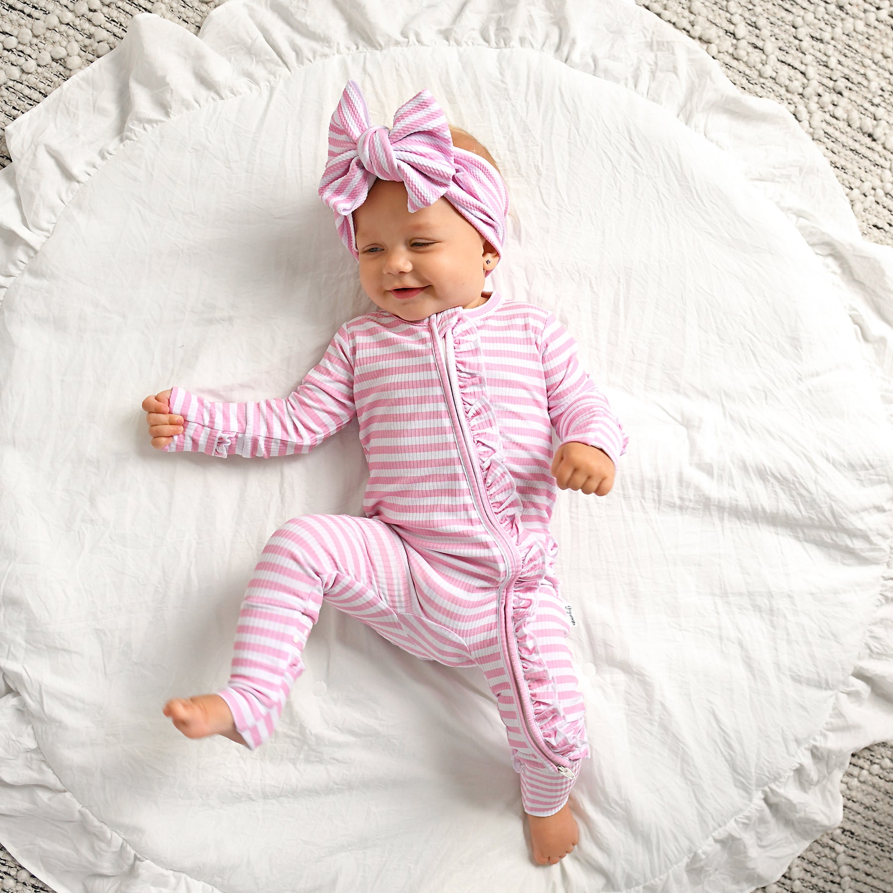 This zip one piece is super soft and comfortable. Featuring a zipper that runs from the top of the outfit to the ankle. Our favorite part about this outfit is that the zipper is 2 way! Making for super easy diaper changes without having to remove the whole outfit.