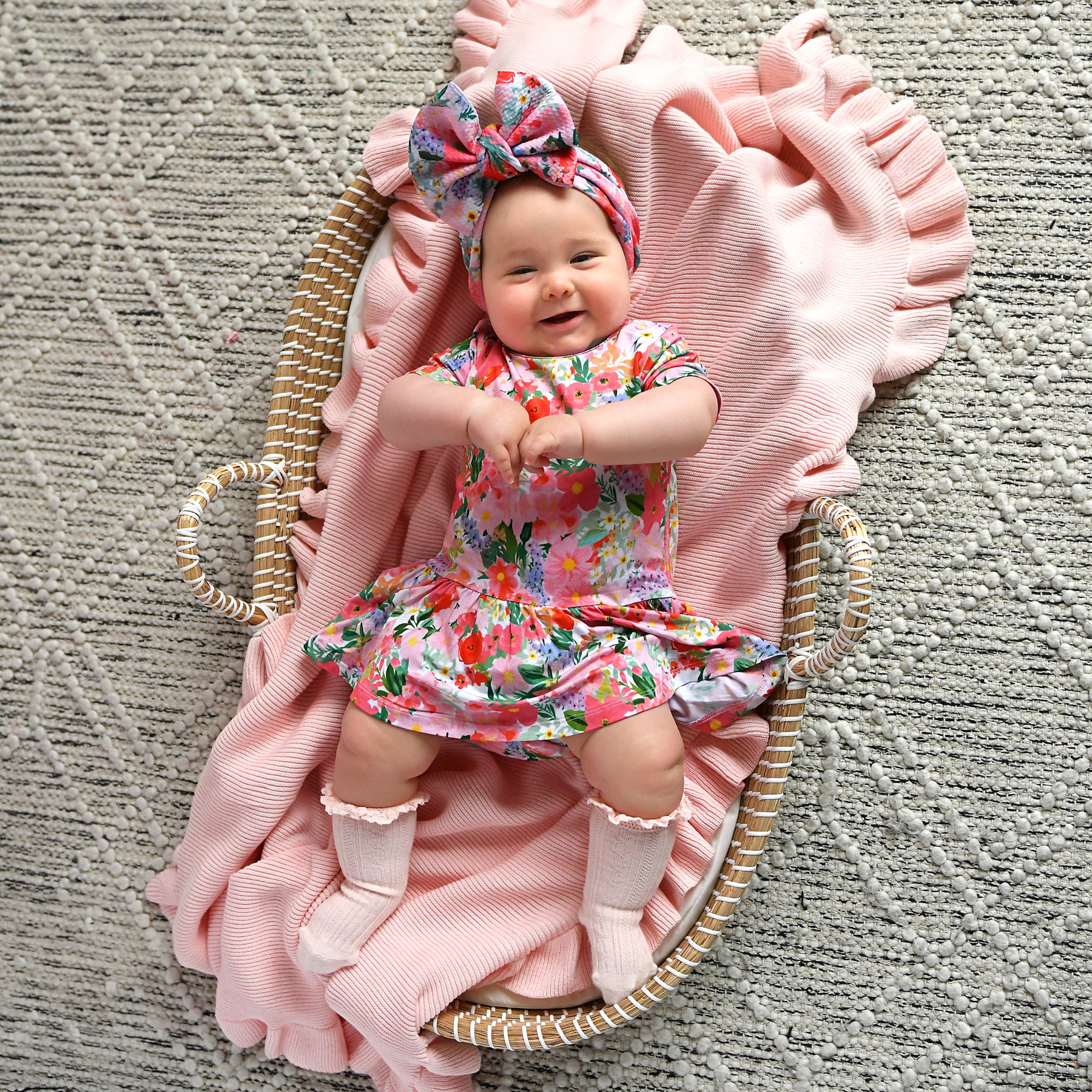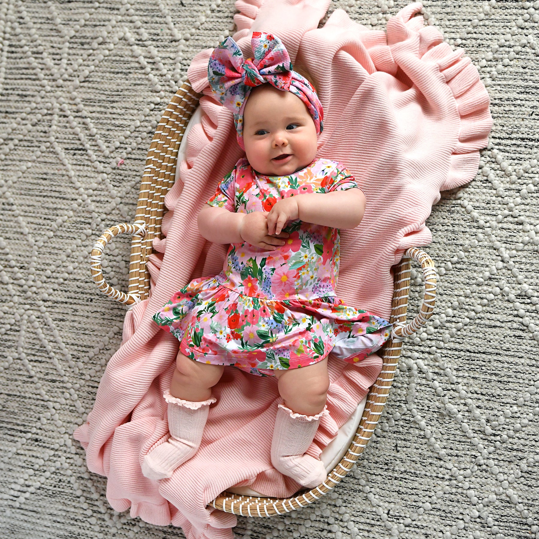 This tutu is super soft and comfortable! Featuring the sweetest little tutu skirt attached to the fitted bodysuit. 3 snaps at bottom make for easy and fast diaper changes. Snaps at the shoulder make taking on and off baby very easy!