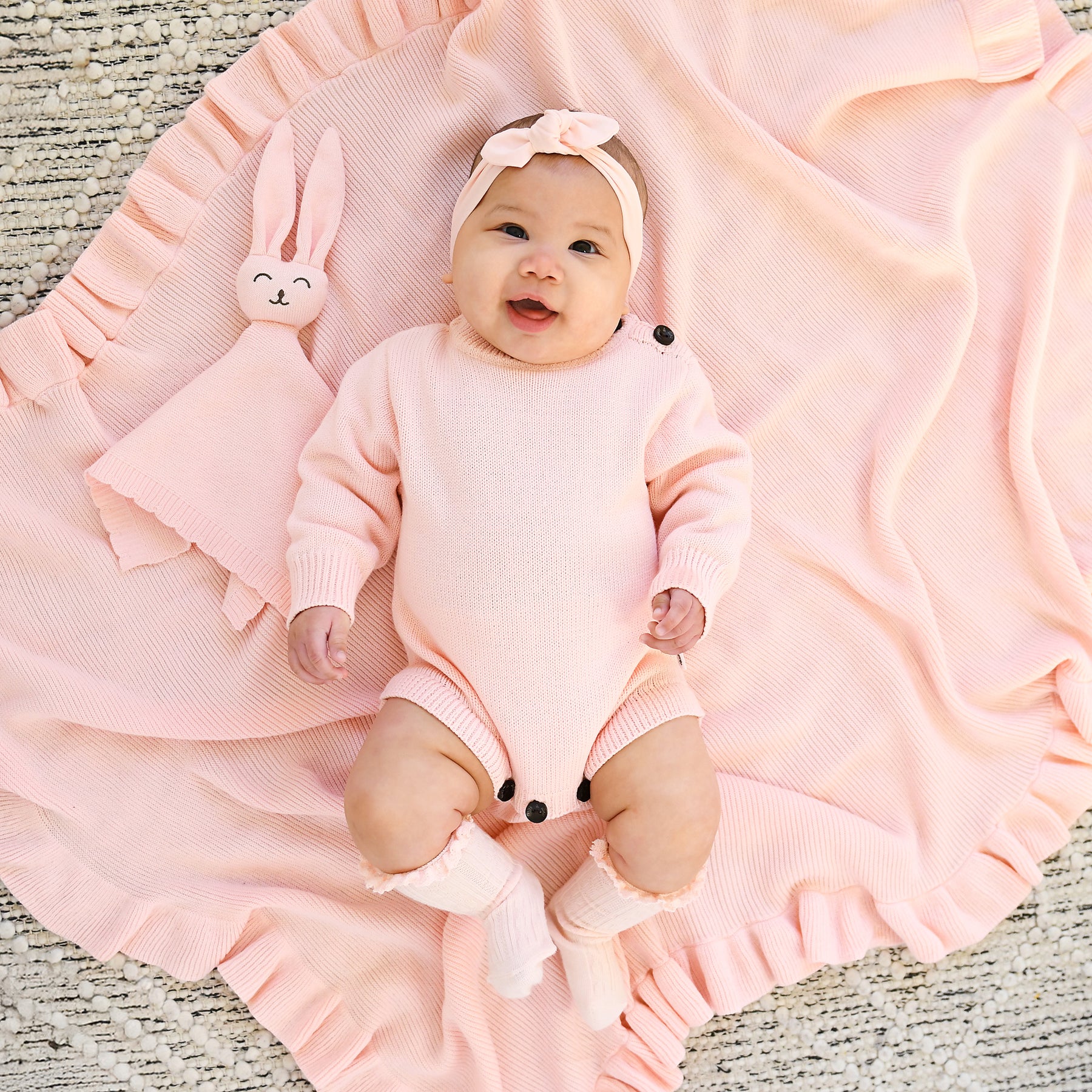 This topknot headband is super soft and stretchy, it measures 23" long and should fit most babies perfectly (nb+)