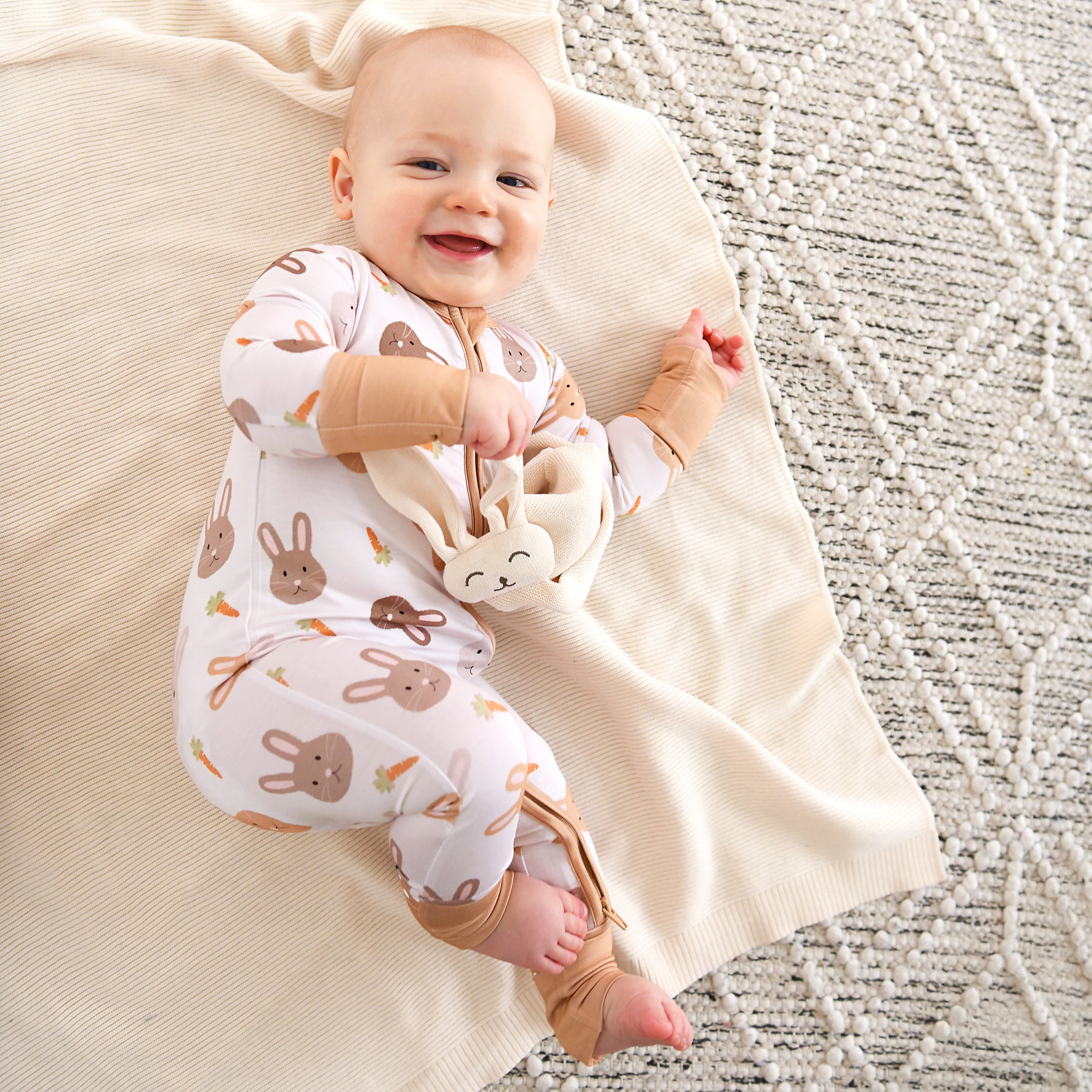 This zip one piece is super soft and comfortable. Featuring a zipper that runs from the top of the outfit to the ankle. Our favorite part about this outfit is that the zipper is 2 way! Making for super easy diaper changes without having to remove the whole outfit.