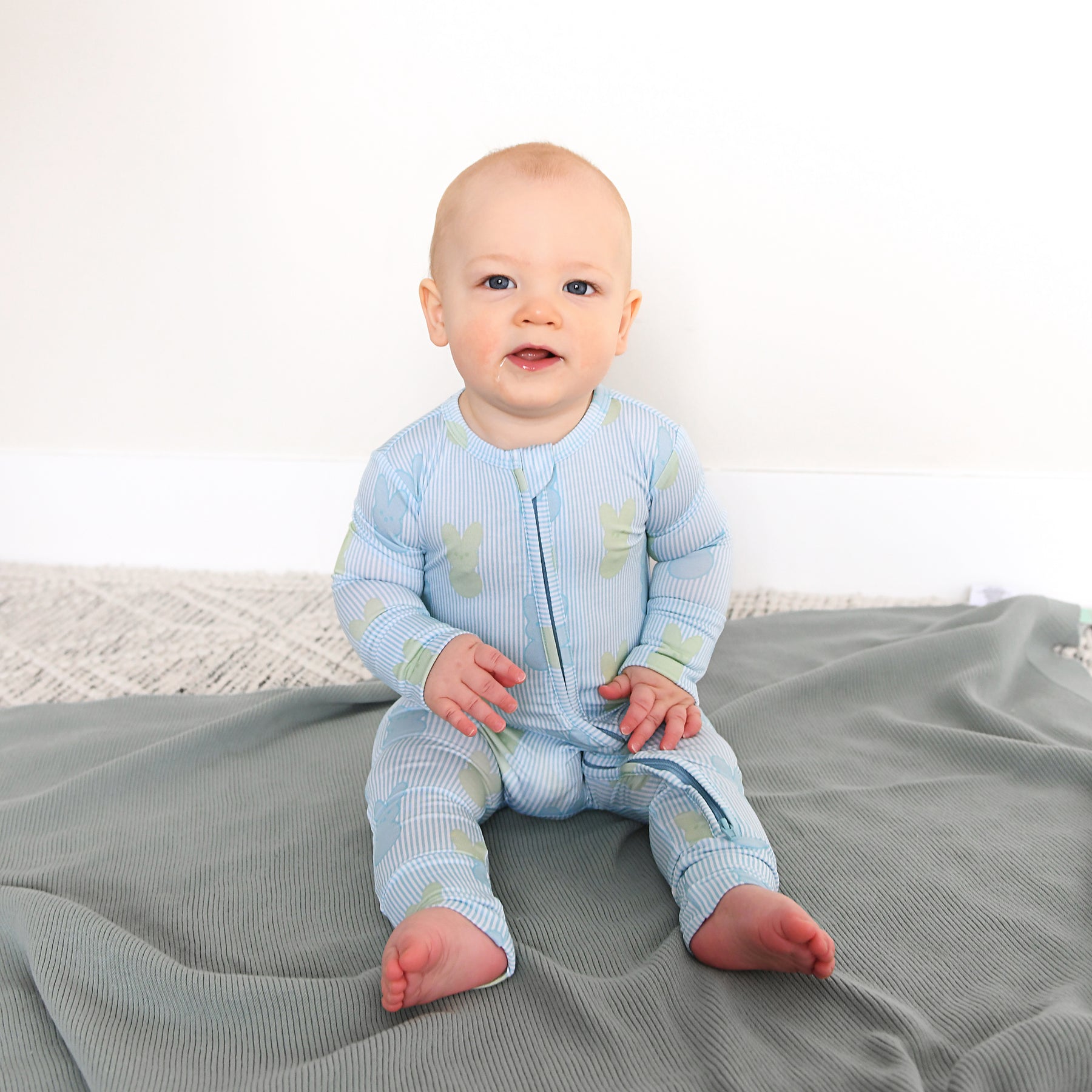 This zip one piece is super soft and comfortable. Featuring a zipper that runs from the top of the outfit to the ankle. Our favorite part about this outfit is that the zipper is 2 way! Making for super easy diaper changes without having to remove the whole outfit.