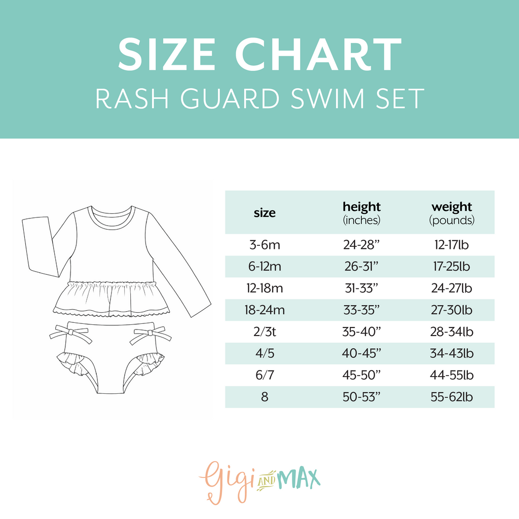 This two-piece swim set is the perfect mix of sweet and functional for your little one. Designed with soft, stretchy fabric and built-in UPF 50+ protection, it keeps her comfortable and covered for long days in the sun.