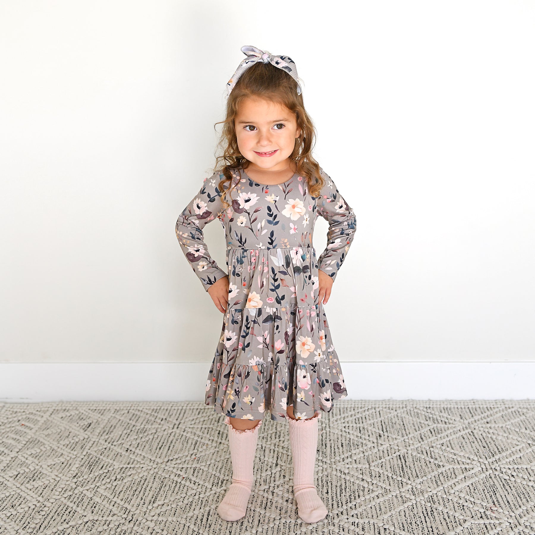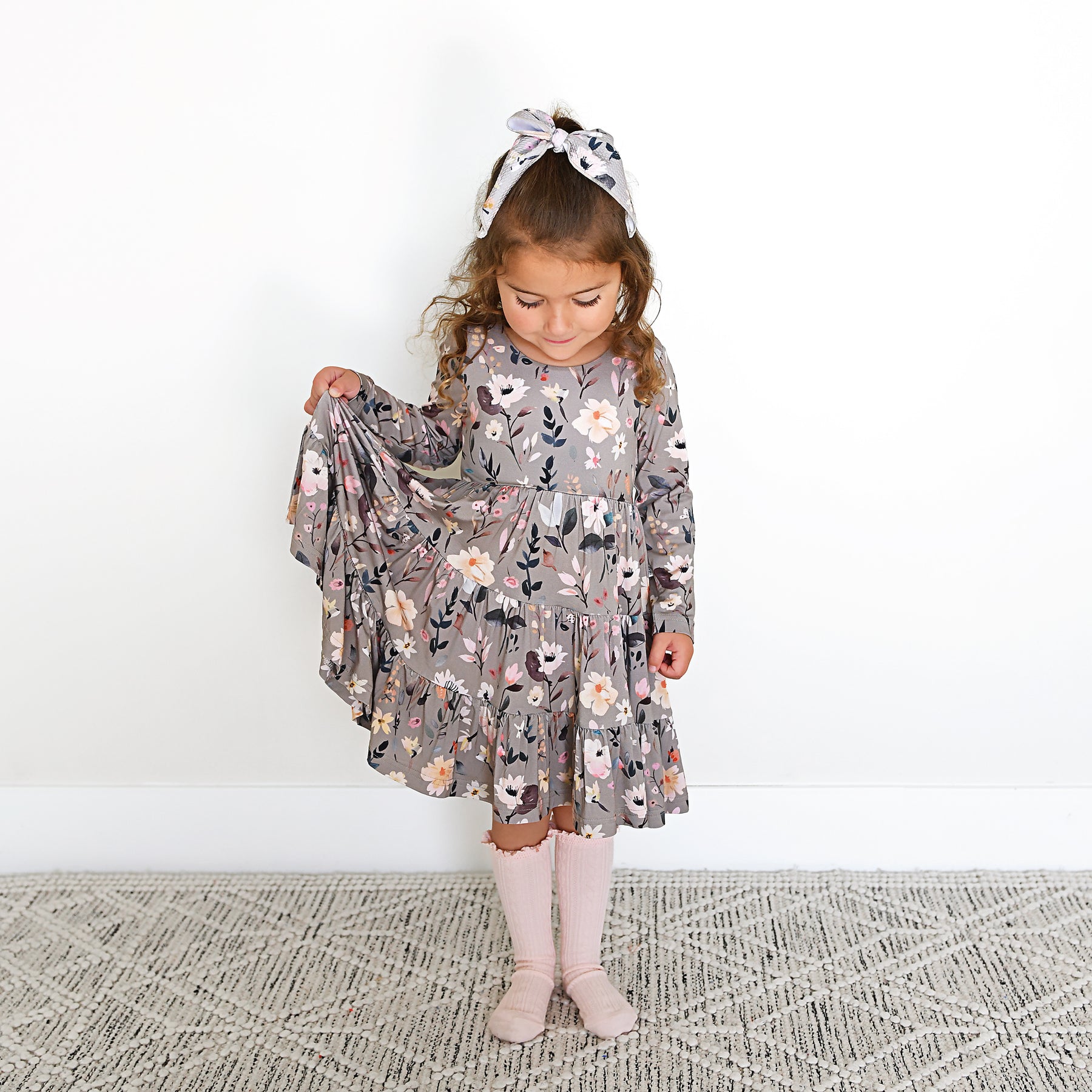 This adorable swing dress is a must have for your cutie, it's perfect for twirling, super soft and so comfortable! Snaps at the shoulder make taking on and off very easy! Bodice is double lined. The tiered skirt is absolutely beautiful.