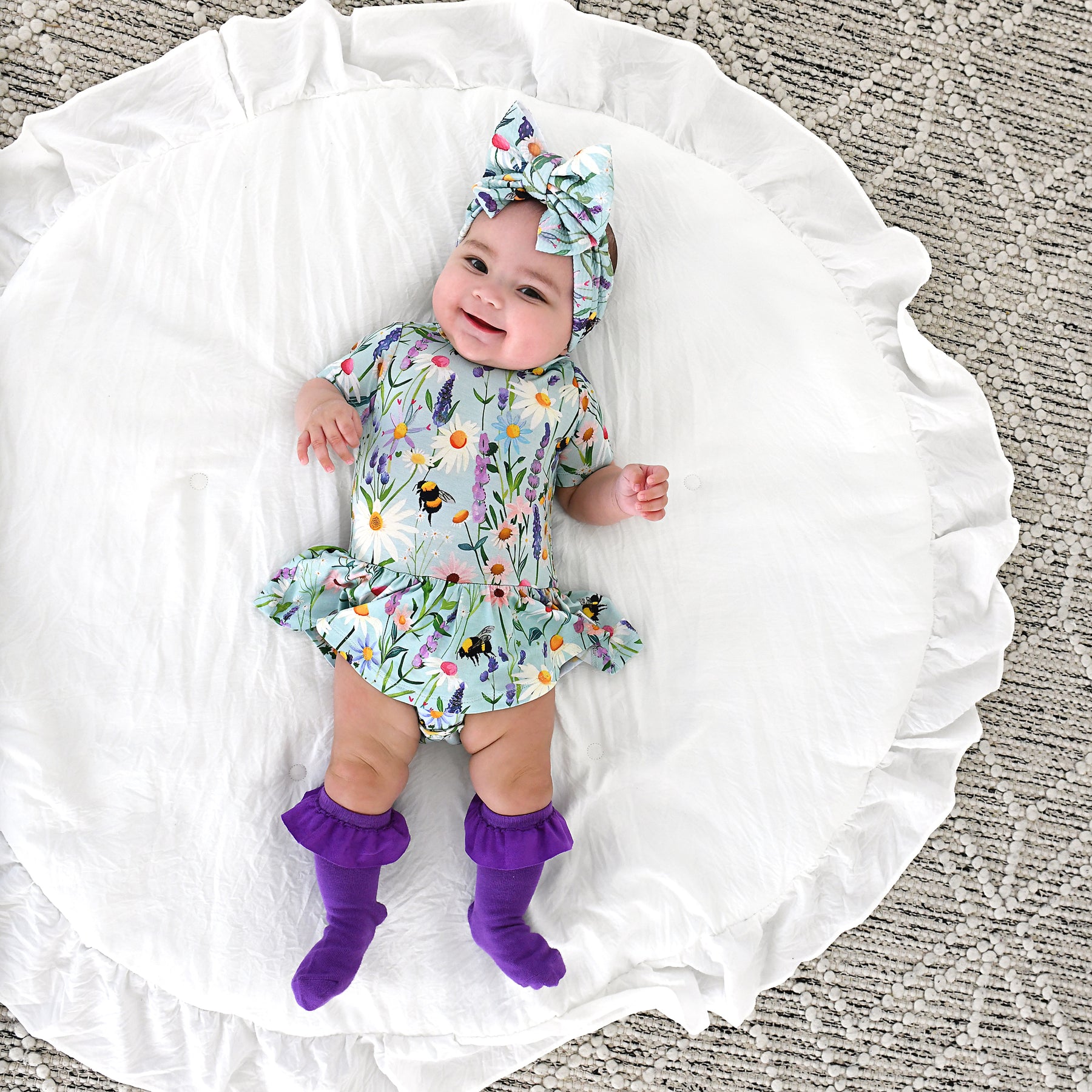 I absolutely love these headbands. The material is so soft and doesn’t leave any marks on her forehead! I love how big they are and how they add a feminine touch to any outfit! I do wish they were adjustable as they are a little loose on newborn heads!