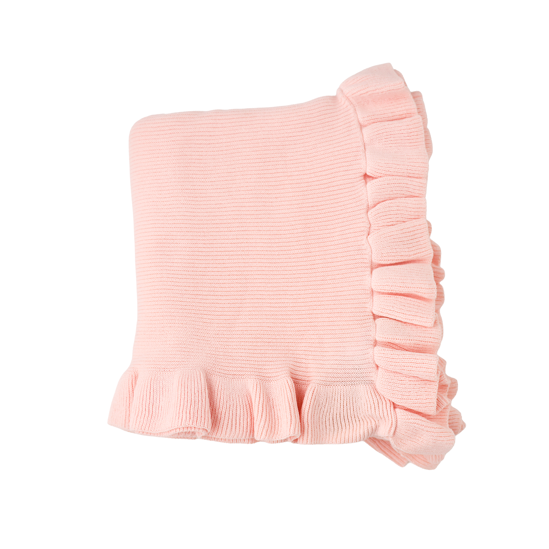 Finished with a charming ruffle edge, this blanket is perfect for cuddles, stroller rides, nursery decor, and keepsake photos. Generously sized for babies and toddlers, it is a meaningful piece to love now and save forever.